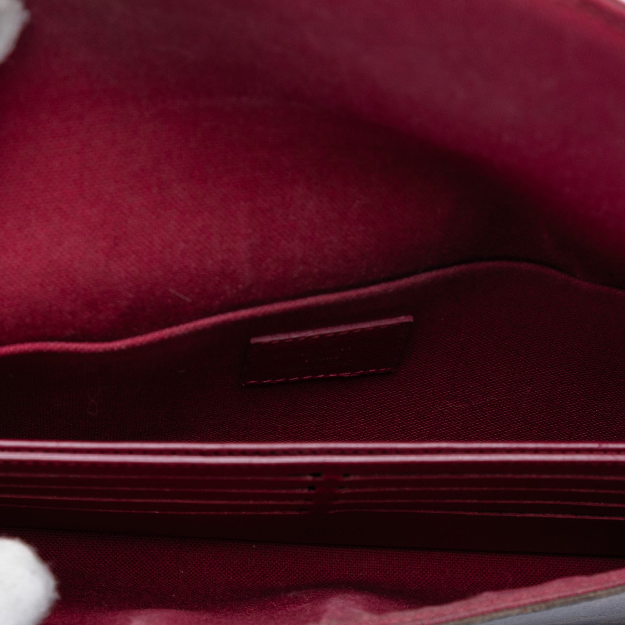 The Pochette Felicie crossbody bag features a monogram canvas body, a detachable gold-tone chain shoulder strap, a top flap with snap closure, and an interior slip pocket.