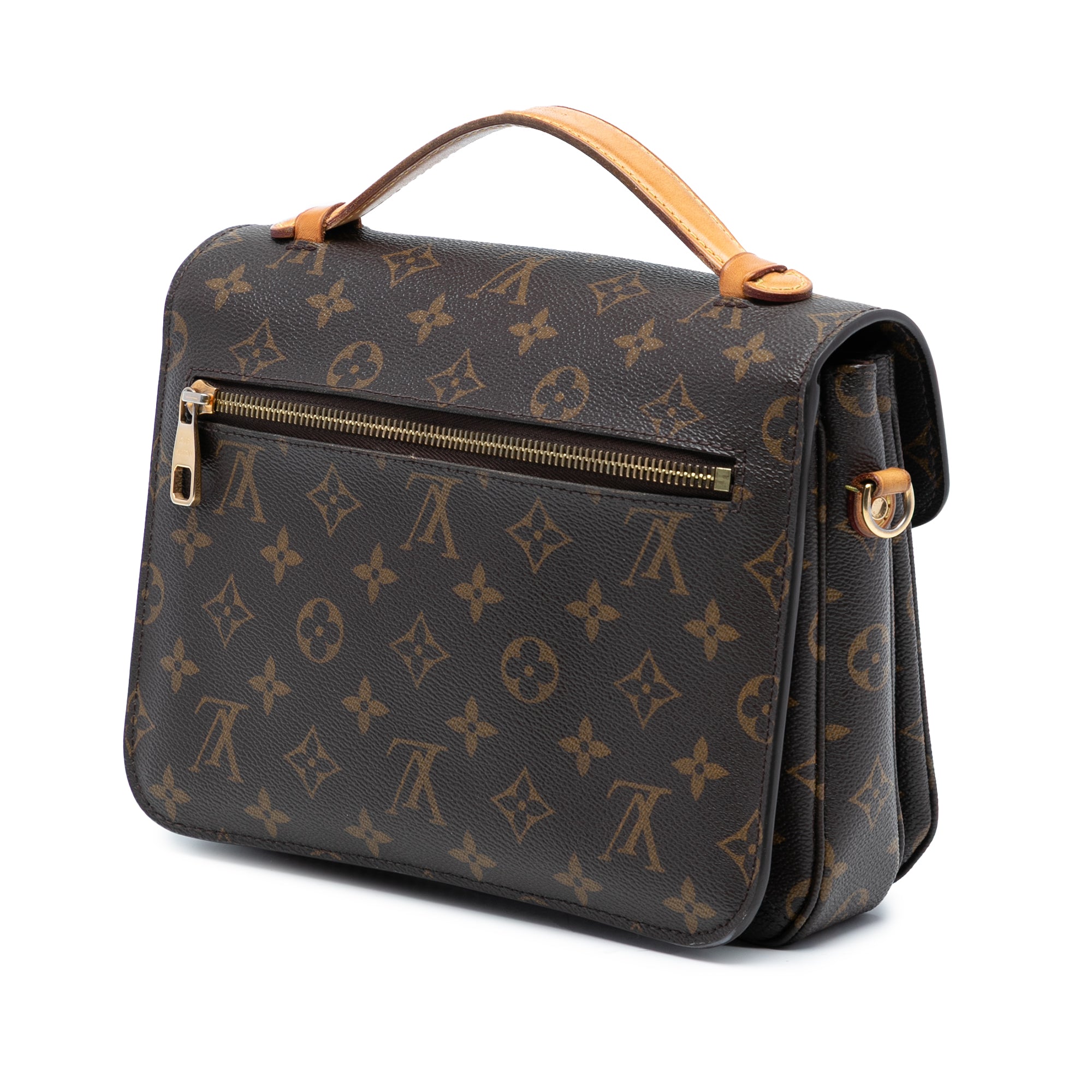 The Louis Vuitton Monogram Pochette Metis is an iconic satchel that combines timeless elegance with everyday functionality. Crafted in the brand's signature monogram canvas with luxurious vachetta leather accents, this versatile piece features a structured silhouette with a flat top handle and detachable shoulder strap for multiple carrying options.