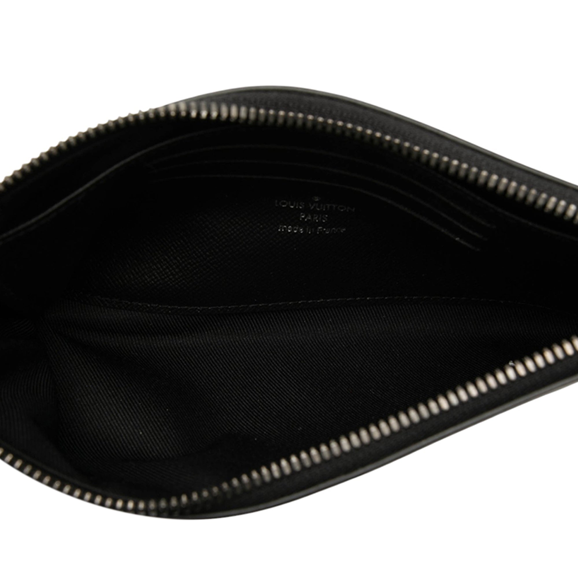 Perfect for the modern gentleman on the go, this versatile pochette can be carried as a clutch for evening events or used as an organizer within a larger bag. The distinctive Taigarama pattern offers a contemporary twist on Louis Vuitton's classic monogram, while the D-ring attachment provides additional carrying options.