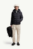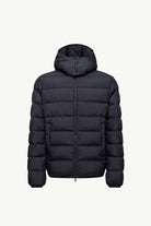 PUFFER JACKET IN BLUE NAVY POLYESTER. FEATURING A REMOVABLE AND ADJUSTABLE HOOD, FRONT ZIP CLOSURE, FRONT SNAP-BUTTON POCKETS, ELASTICATED AND LOGOED CUFFS AND HEM. SHORT MODEL. REGULAR FIT.