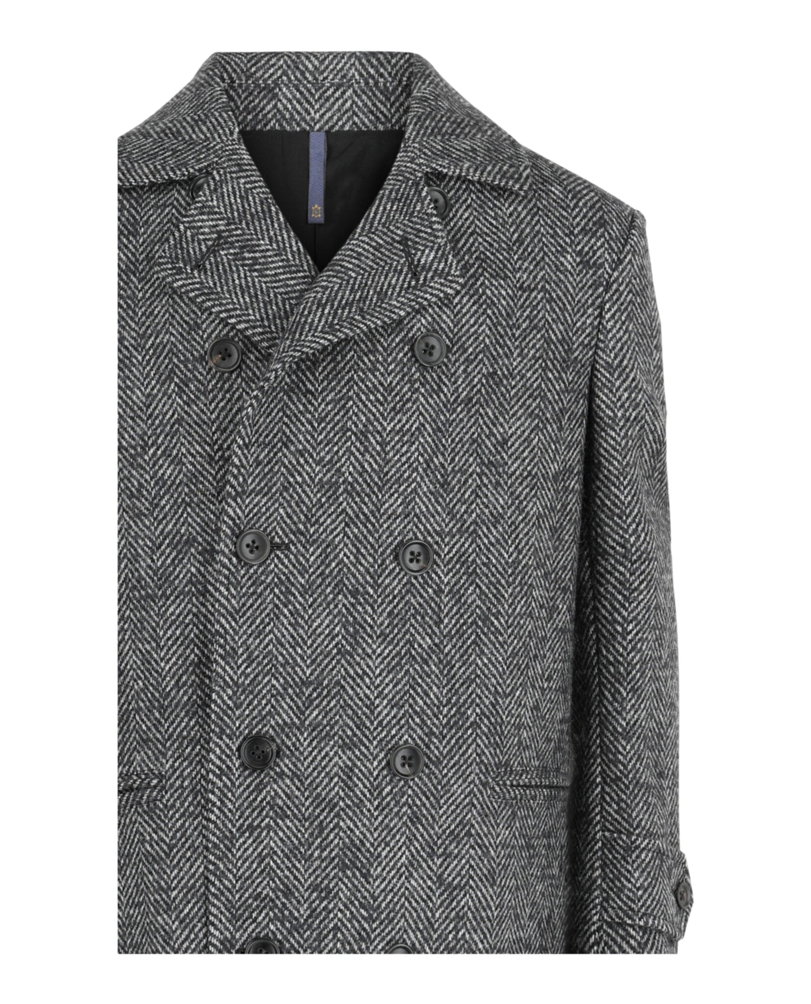 Elevate your outerwear collection with the Monterdoro Herringbone Double-Breasted Coat from Slowear. This sophisticated coat features a timeless herringbone pattern crafted from a luxurious blend of 83% wool, 16% mohair, and 1% polyamide, offering both warmth and refined style.