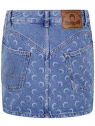Elevate your denim collection with this distinctive mini skirt from Marine Serre, featuring the brand's iconic moon laser pattern throughout the blue wash denim. Crafted from 100% cotton, this piece offers both comfort and style with its classic five-pocket design and flattering mini length.