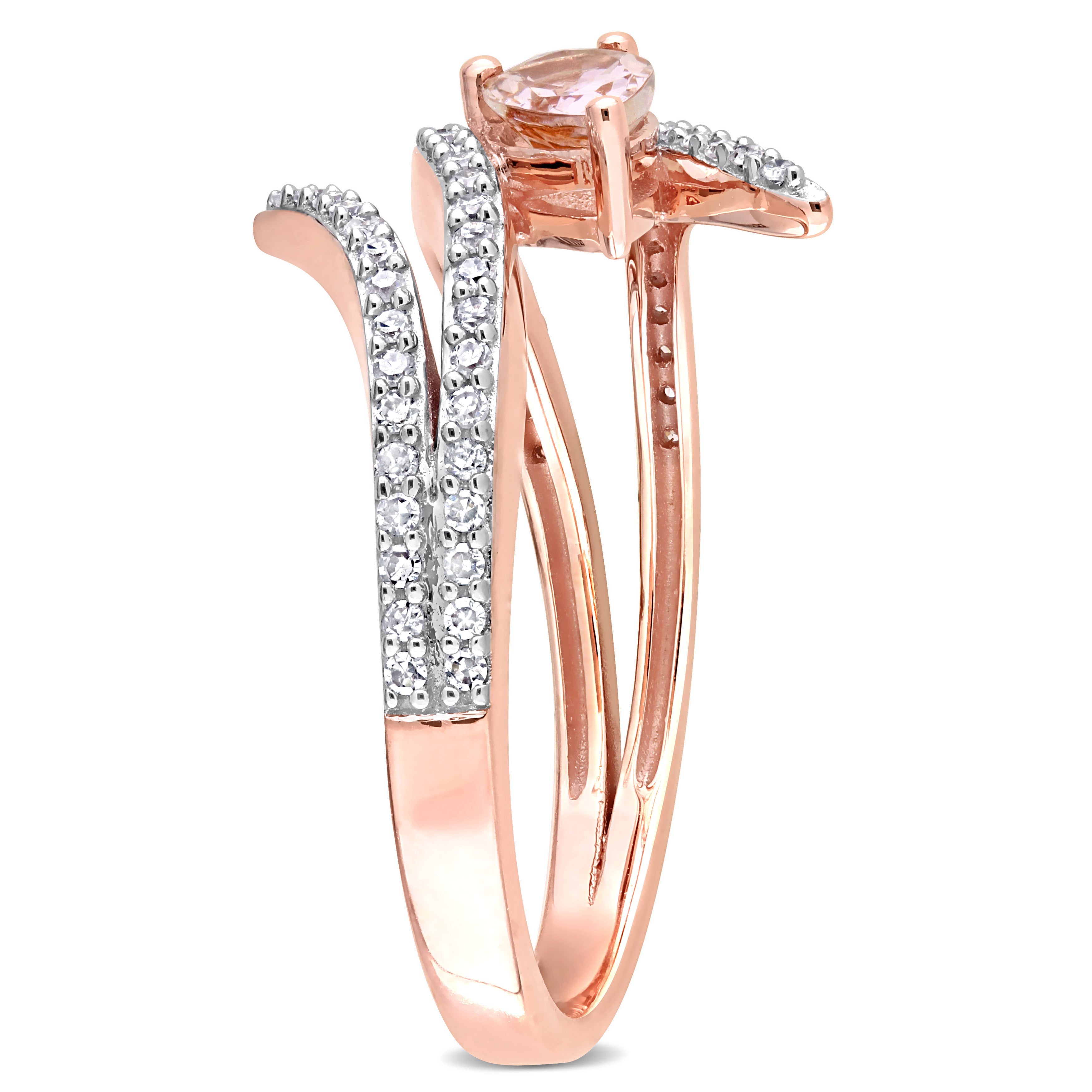 Morganite & 1/4 CT TW Diamond Open Wrap Ring in 10k Rose Gold