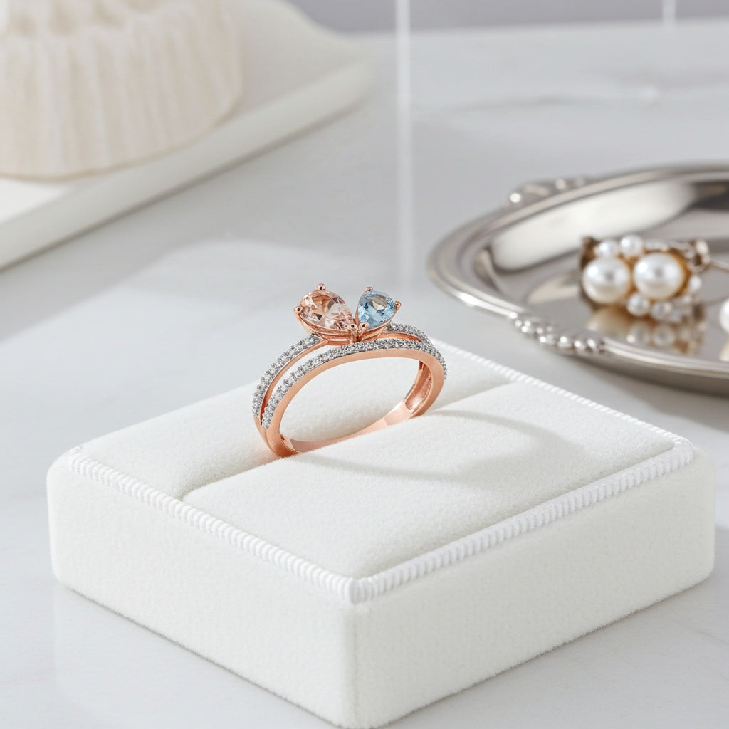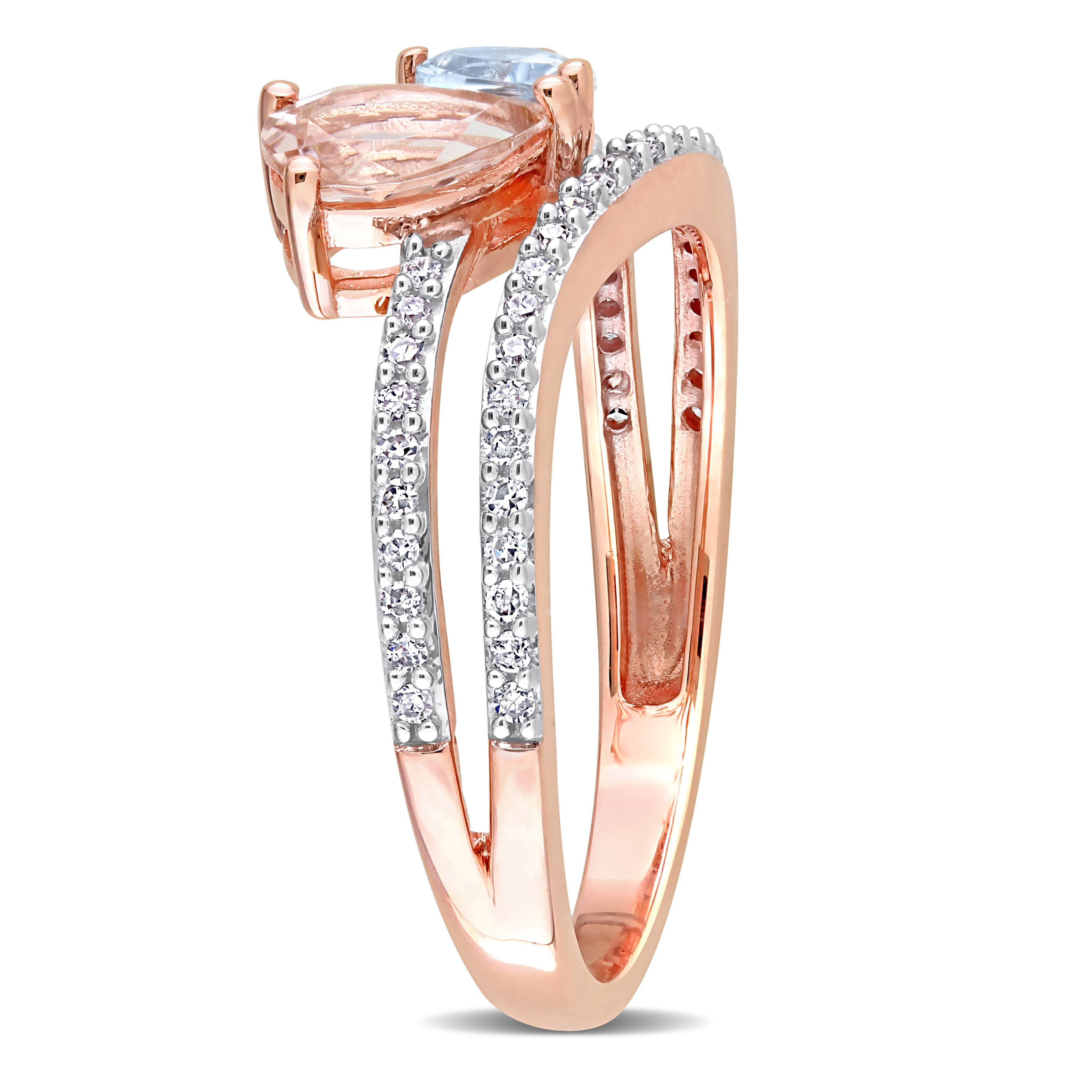 Morganite & Aquamarine & 1/4 CT TW Diamond 2-Stone Open Ring in 10k Rose Gold