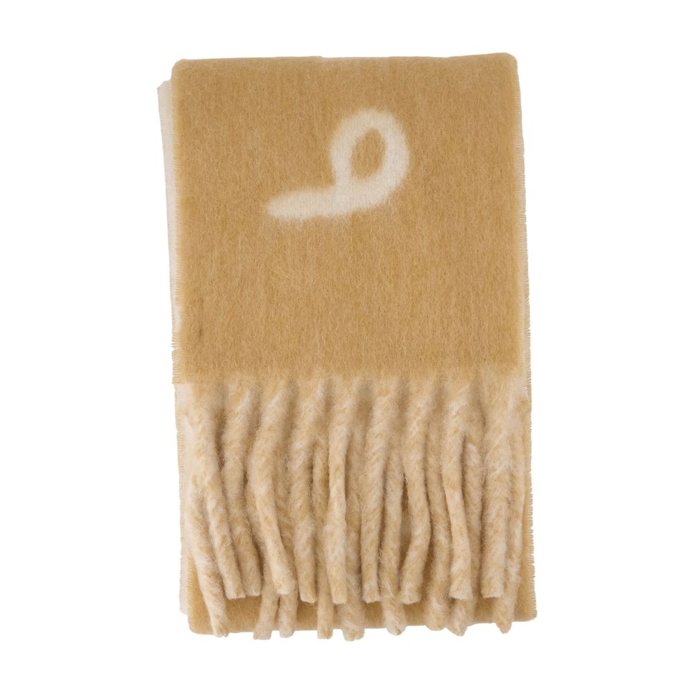 This luxurious Burberry scarf features a classic design with elegant fringe detailing in a versatile beige tone.