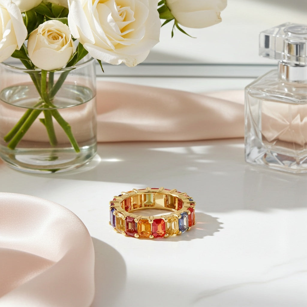 Multi-Color Sapphire Eternity Ring in 14k Yellow Gold