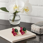 Multi-Cut Green & Pink Tourmaline Cluster Stud Earrings in 14k Rose Gold