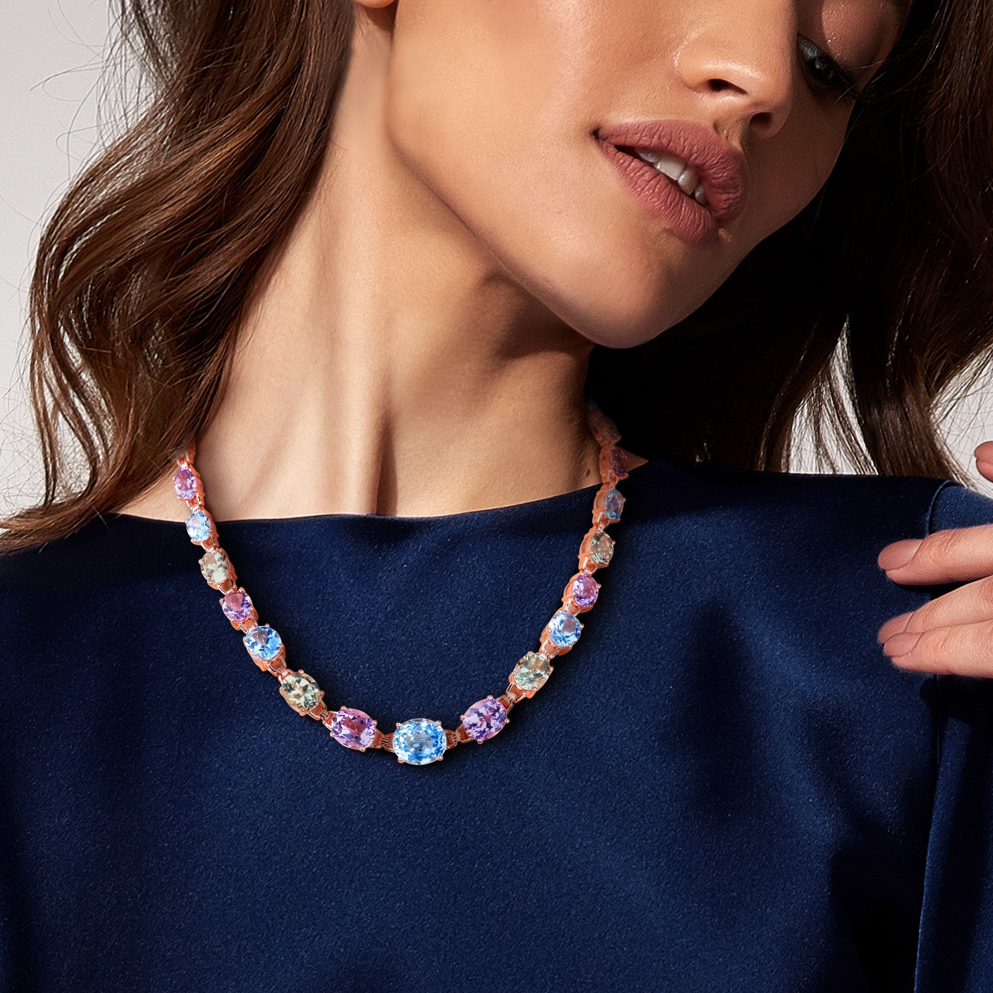 Multi-Gemstone Link Necklace in Rose Plated Silver