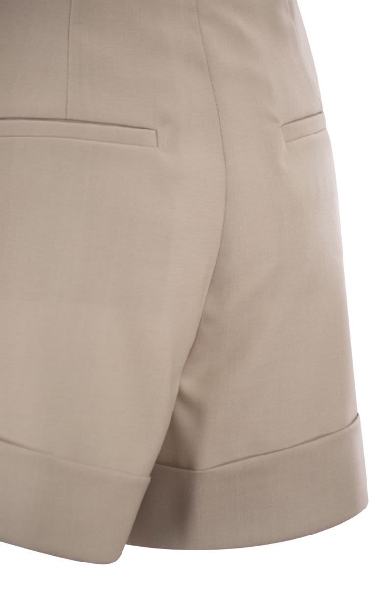 HIGH-WAISTED SHORTS IN WOOL, MOHAIR AND SILK FABRIC WITH TURNED-UP HEM. - SLIGHTLY FLARED SILHOUETTE - HIGH WAISTBAND CLOSURE WITH ZIP FLY AND HOOK FASTENING - FRENCH POCKETS ON THE SIDES - SLASH POCKETS ON THE BACK - STITCHED DARTS AT THE BACK WAIST DESIGNER ID: 2611141011600 021