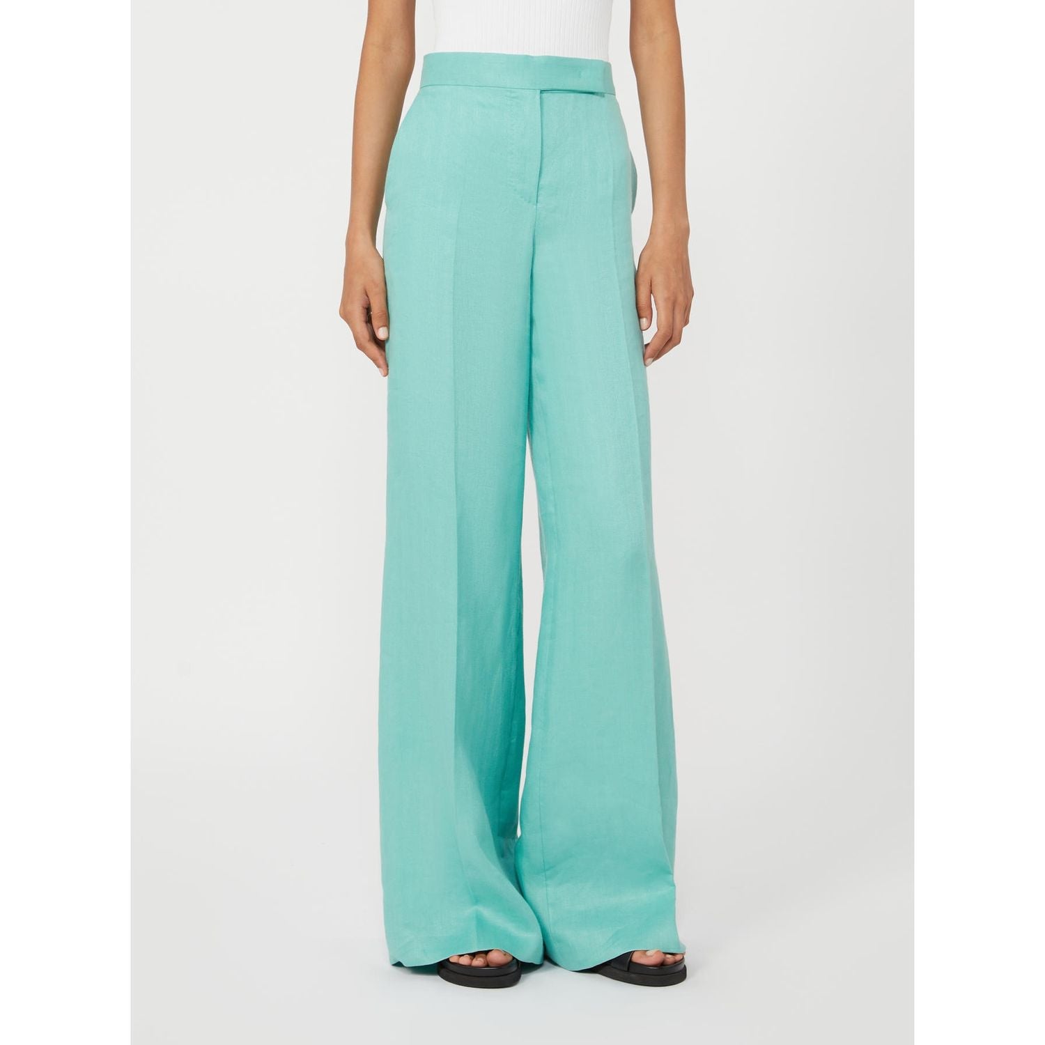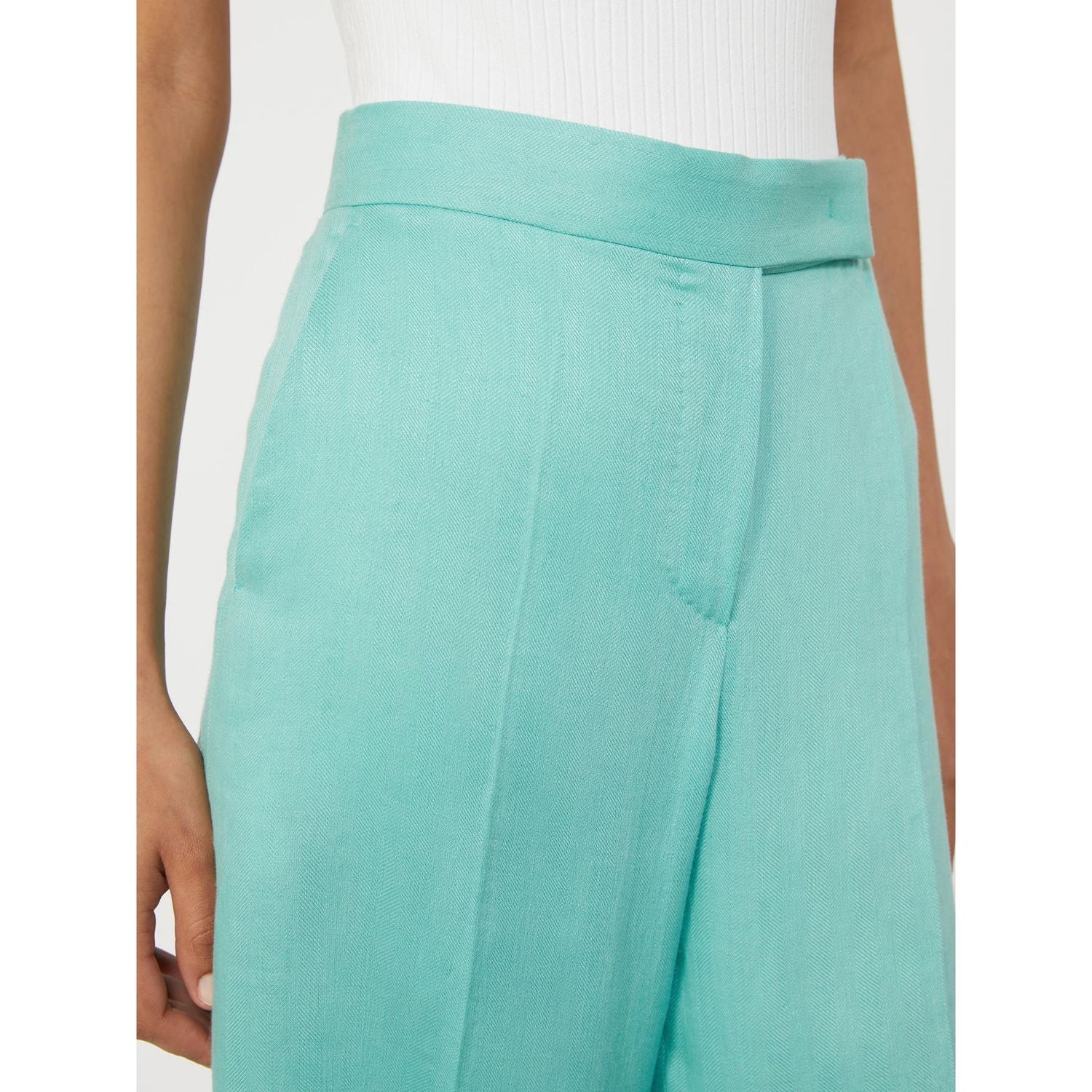 Style them with a crisp white blouse for the office, or pair with a simple tank and sandals for a chic vacation ensemble. The versatile water blue shade adds a pop of color while remaining refined and timeless—a signature of Max Mara's impeccable Italian craftsmanship.