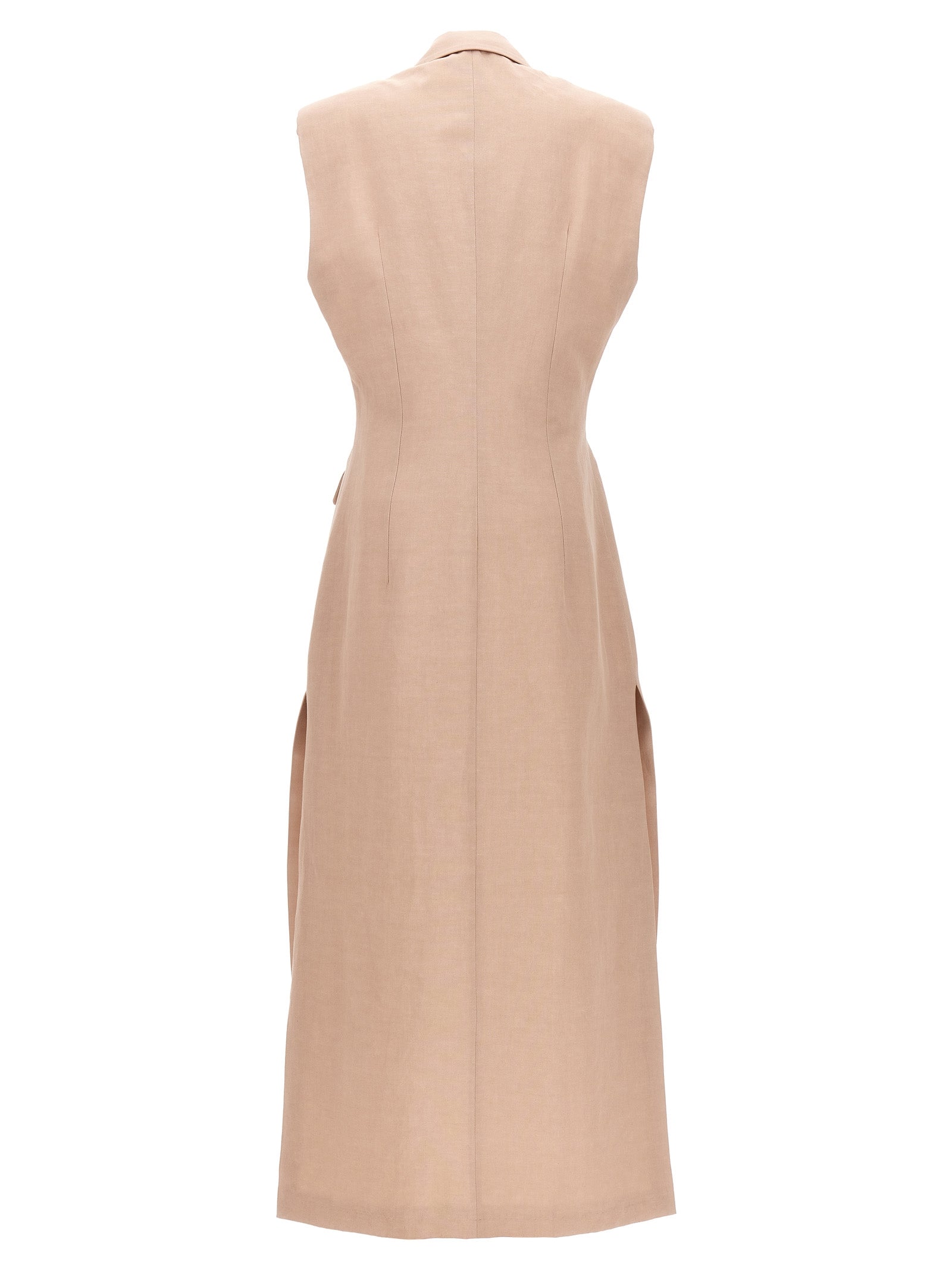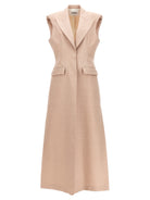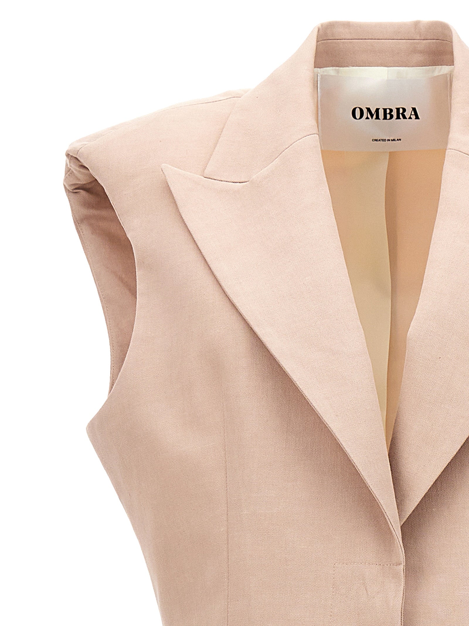 Elevate your wardrobe with the N°4 Long Vest by OMBRA MILANO, a sophisticated piece that seamlessly blends structure and elegance. Crafted from a luxurious cotton and linen blend, this sleeveless vest features a single-breasted button closure, padded shoulders for a refined silhouette, and functional pockets for added practicality.