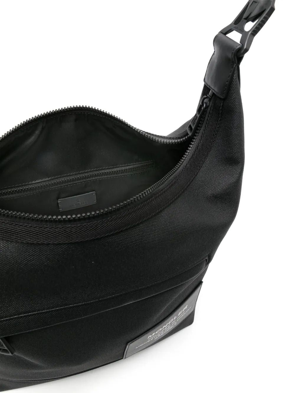 BAG, NAKOA MODEL, BLACK.TOP HANDLE WITH BUCKLE CLOSURE. 2 COTTON HANDLES FOR SHOULDER CARRYING. TOP ZIPPER CLOSURE. 1 INSIDE ZIPPED POCKET. 2 OUTSIDE ZIPPED POCKETS. LEATHER JACRON WITH WHITE LETTERING ON FRONT.Â