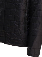 Patagonia "Nano Puff" jacket, made of 100% recycled polyester ripstop outer fabric. PrimaLoft Gold Insulation Eco padding, ensures thermal performance even in humid conditions. Low-profile construction includes square quilting with side gussets and strong stitching, promoting small footprint and stability. Preformed shaping at shoulders and elbows for enhanced mobility.