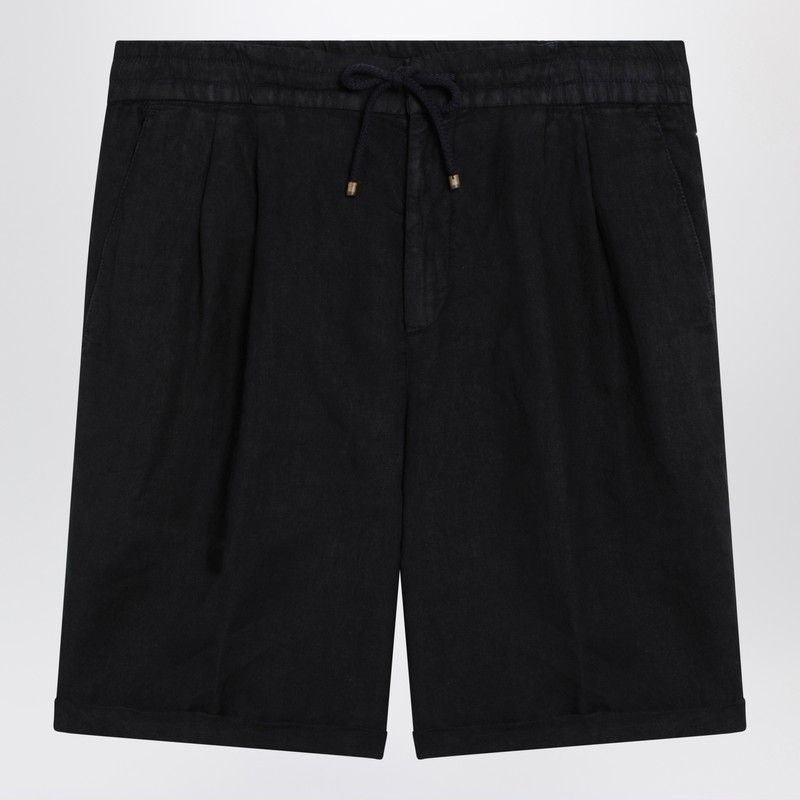 NAVY BLUE LINEN DRAWSTRING BERMUDA SHORTS
