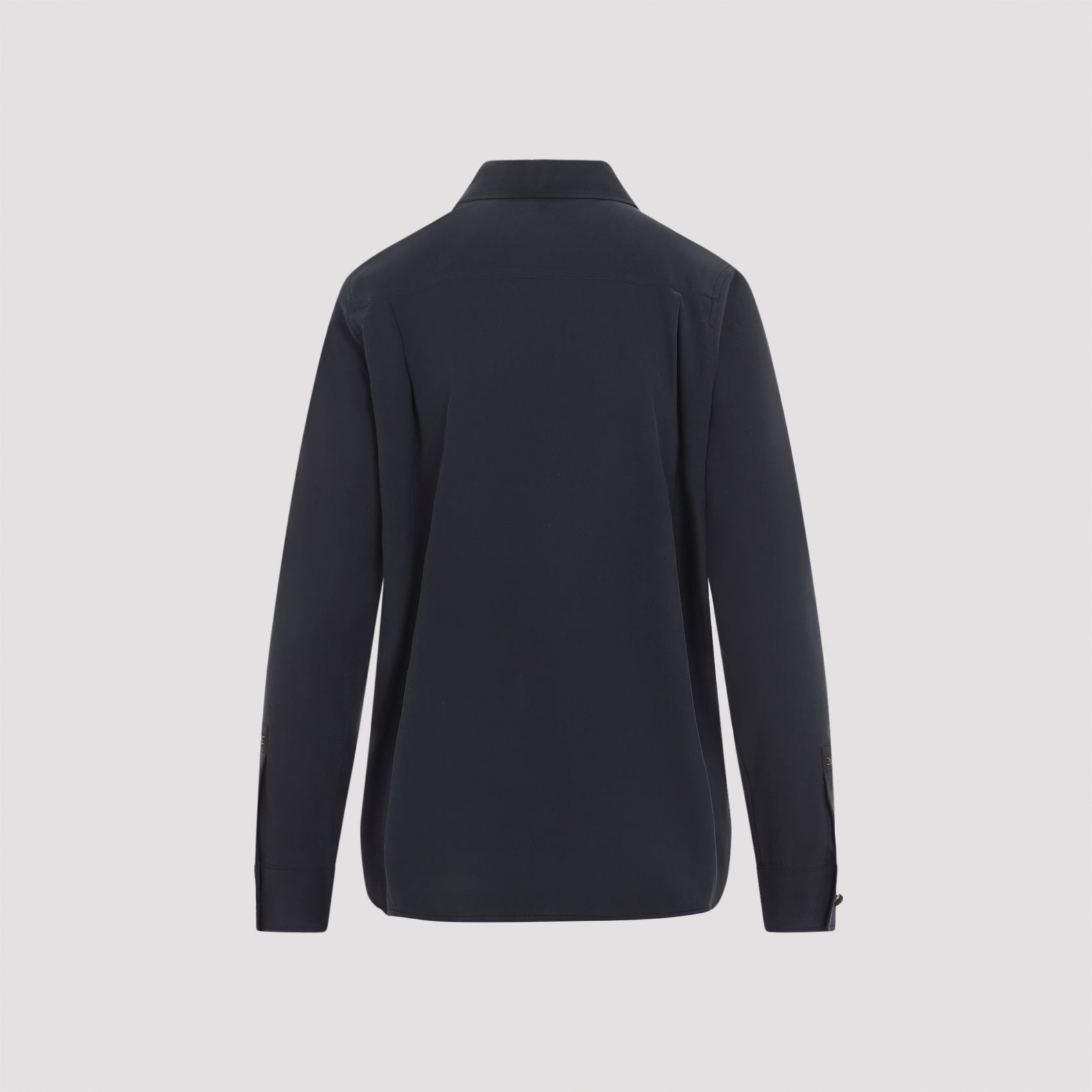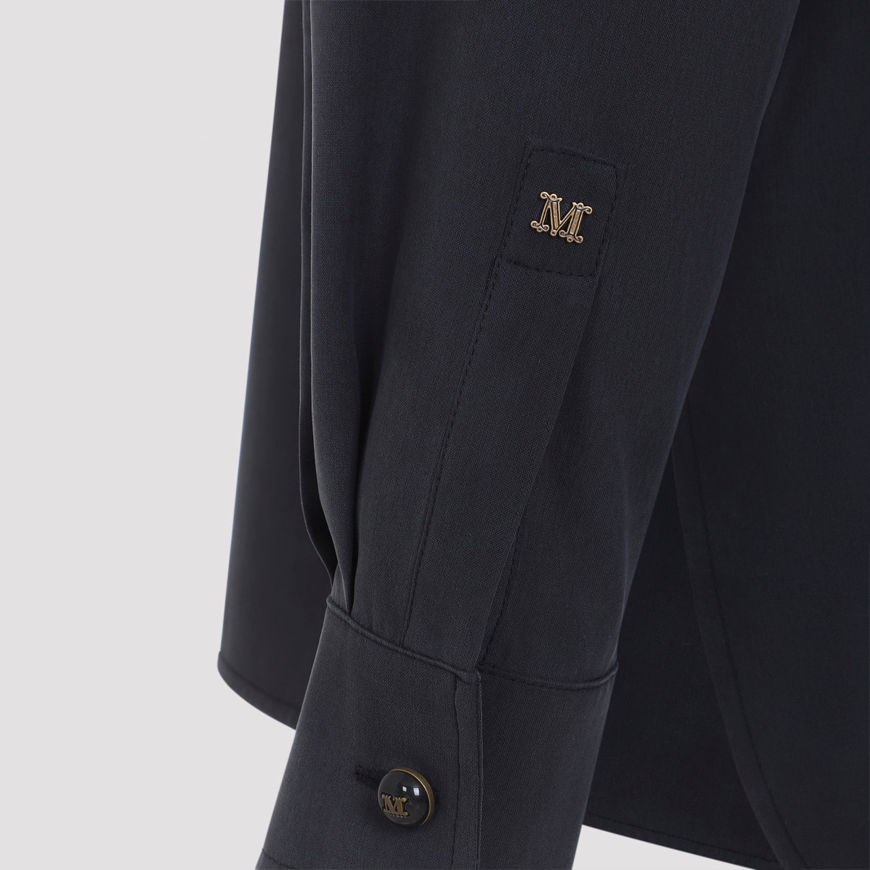 MAX MARA NAVY BLUE SILK SIAMESE SHIRT. PURE NAVY BLUE SILK SHIRT, POINTED COLLAR, FRONT CONCEALING BUTTONED FASTENING, LONG SLEEVES, BUTTONED CUFFS, STRAIGHT HEM.