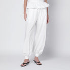 Elevate your warm-weather wardrobe with the Nicola Highwaisted Poplin Trousers from ROTATE Birger Christensen. Crafted from pristine white organic cotton poplin, these trousers feature a distinctive balloon silhouette that offers both comfort and contemporary style. The high-waisted design with a structured waistband panel creates a flattering fit, while the concealed side zip fastening ensures a seamless look.