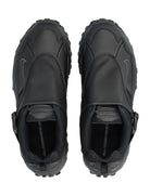 CRAFTED FROM SYNTHETIC LEATHER, THEY FEATURE A TENT FLAP–INSPIRED SHROUD THAT BUCKLES OVER THE LACES FOR A SLEEK, TECHNICAL LOOK.
