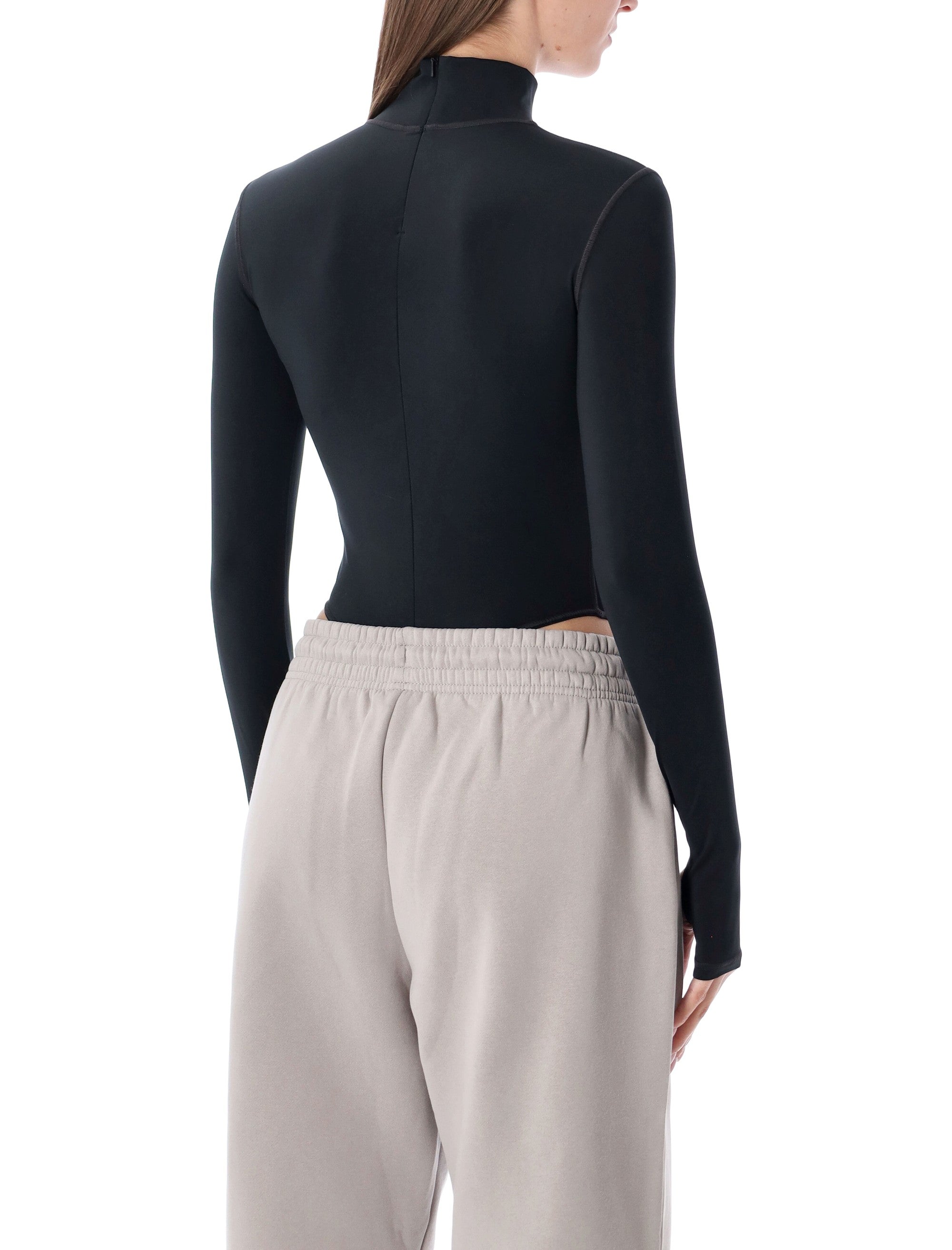 CRAFTED FROM SMOOTH, STRETCH TECHNICAL FABRIC, IT FEATURES A HIGH NECKLINE, CONTOURED SILHOUETTE, AND SUBTLE LOGO DETAIL AT THE CHEST.
