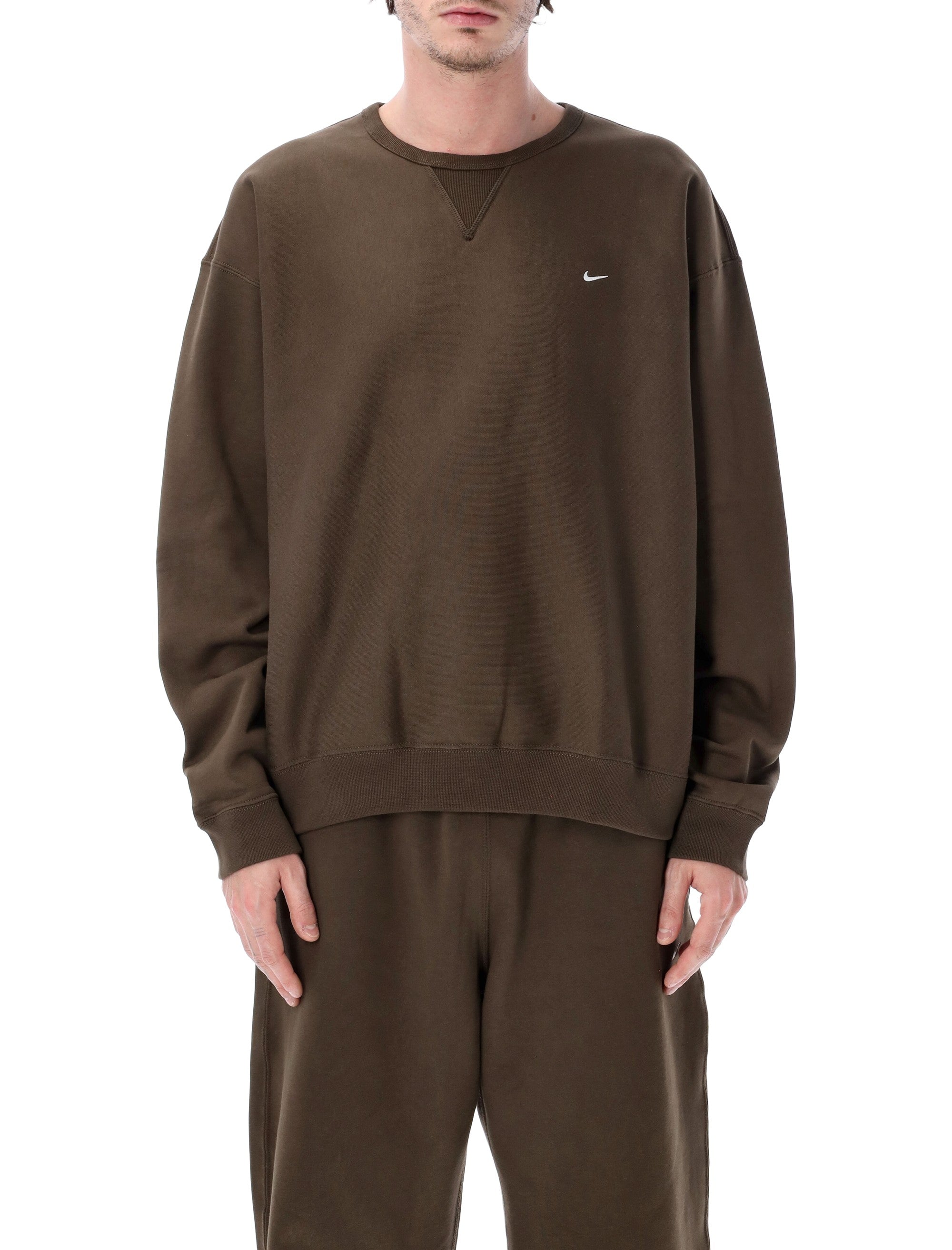 DEFINED BY A CLEAN, ELEVATED SILHOUETTE, THIS SOLO SWOOSH CREWNECK SWEATSHIRT BY NIKE IS CRAFTED FROM HEAVYWEIGHT BRUSHED FLEECE FOR SUPERIOR WARMTH, STRUCTURE, AND A PLUSH INTERIOR FEEL. THE RELAXED CUT AND RIBBED TRIMS ENHANCE EVERYDAY COMFORT, WHILE THE SUBTLE EMBROIDERED SWOOSH ADDS REFINED SIMPLICITY—PERFECT FOR VERSATILE, POLISHED LAYERING.