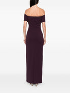 Make a stunning entrance in the Nile Maxi Dress by SOLACE London. This elegant floor-length gown features a sophisticated off-shoulder design with short sleeves, rendered in a rich plum purple hue that exudes luxury and refinement.