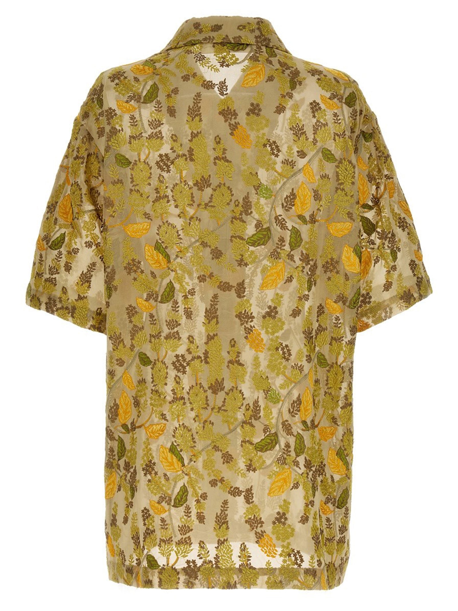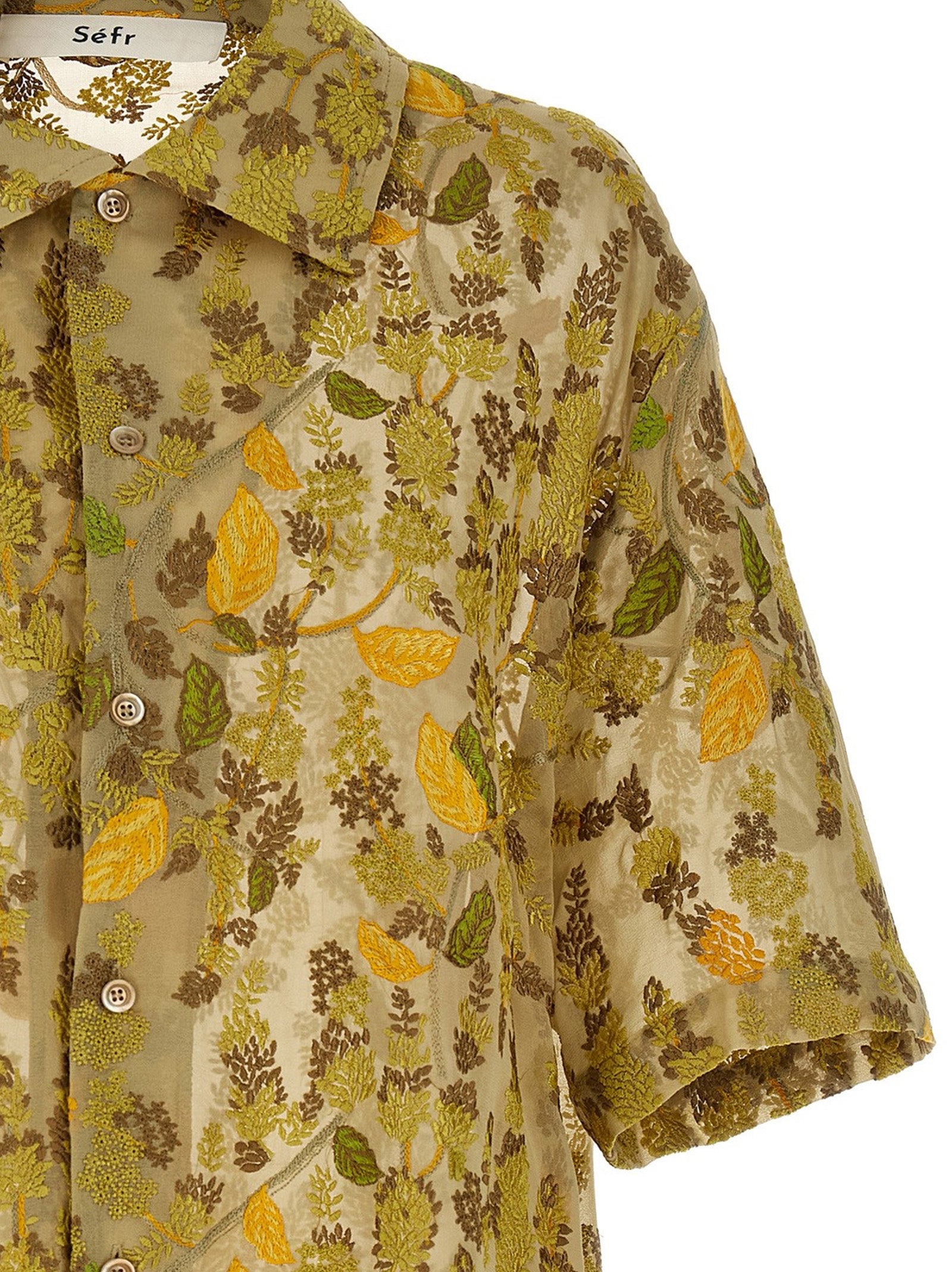 Elevate your warm-weather wardrobe with the 'Noam' shirt from SÉFR, a stunning piece that combines artistry with effortless style. Crafted from luxurious transparent viscose, this shirt features intricate all-over embroideries in beautiful golden and earthy tones that create a captivating visual texture.