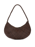 DRAGON DIFFUSION SMALL "NOVA LUNA" SHOULDER BAG. THE COMPACT STRUCTURE AND ROUNDED SILHOUETTE ARE DERIVED FROM THE DESIGN OF THE LUNA MEZZA, WHOSE FLEXIBLE PROFILE IS ECHOED IN A SMALLER FORMAT. THE MAIN MATERIAL IS BUFFALO CALFSKIN LEATHER, WITH CRAFTSMANSHIP WOVEN TO FORM THE CURVED HANDLE, DESIGNED TO GRIP THE SHOULDER AND ENSURE COMFORT DURING USE. CAPACITY OPTIMIZED FOR CARRYING ESSENTIALS.