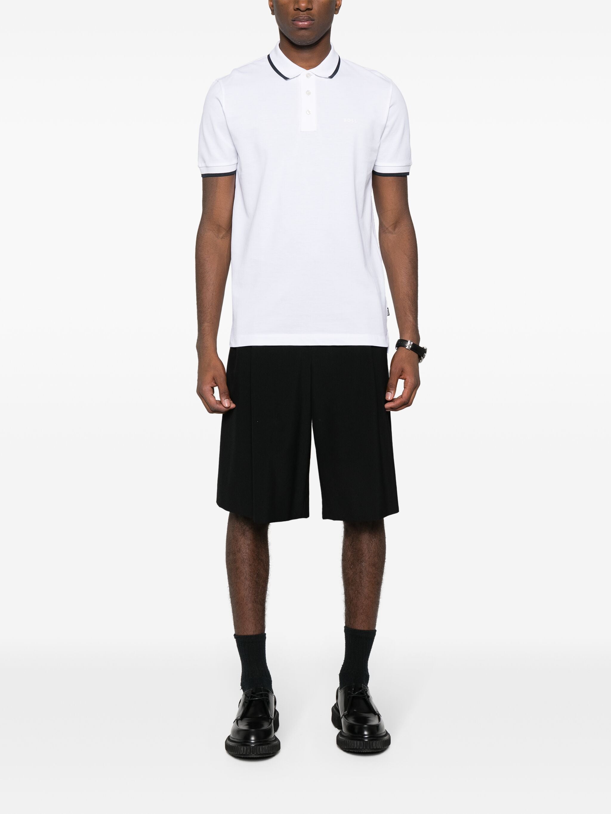 Elevate your everyday wardrobe with the NUDE NEUTRALS Cotton Parlay Polo from HUGO BOSS. Crafted from 100% premium cotton, this classic white polo features sophisticated contrast trim at the collar and sleeves for a refined, sporty aesthetic.