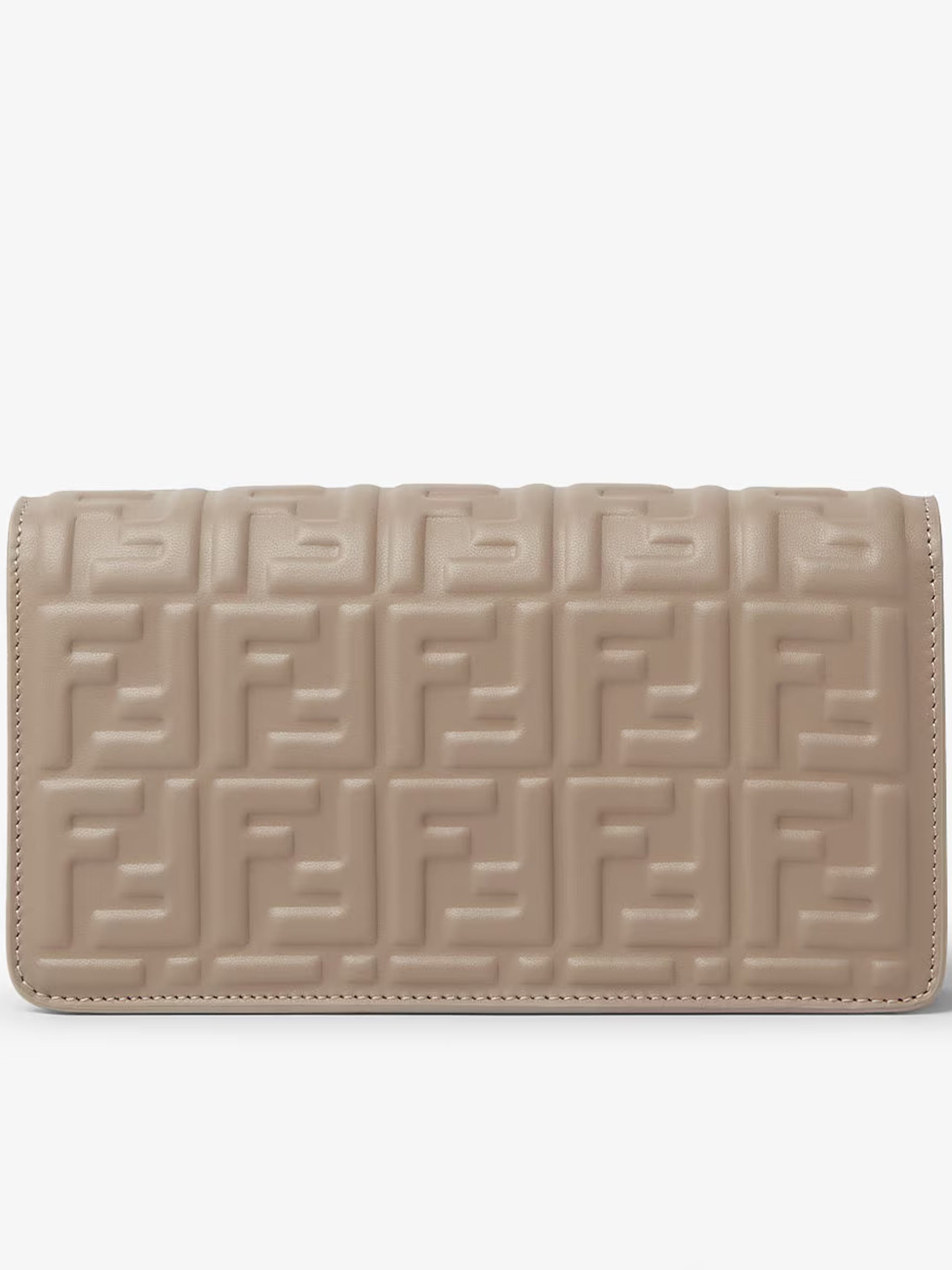 Crafted from supple nappa leather in a versatile nude tone, this structured bag effortlessly transitions from day to night. The adjustable shoulder strap and elegant gold-tone chain detail offer multiple styling options, while the signature FF clasp adds a sophisticated finishing touch.