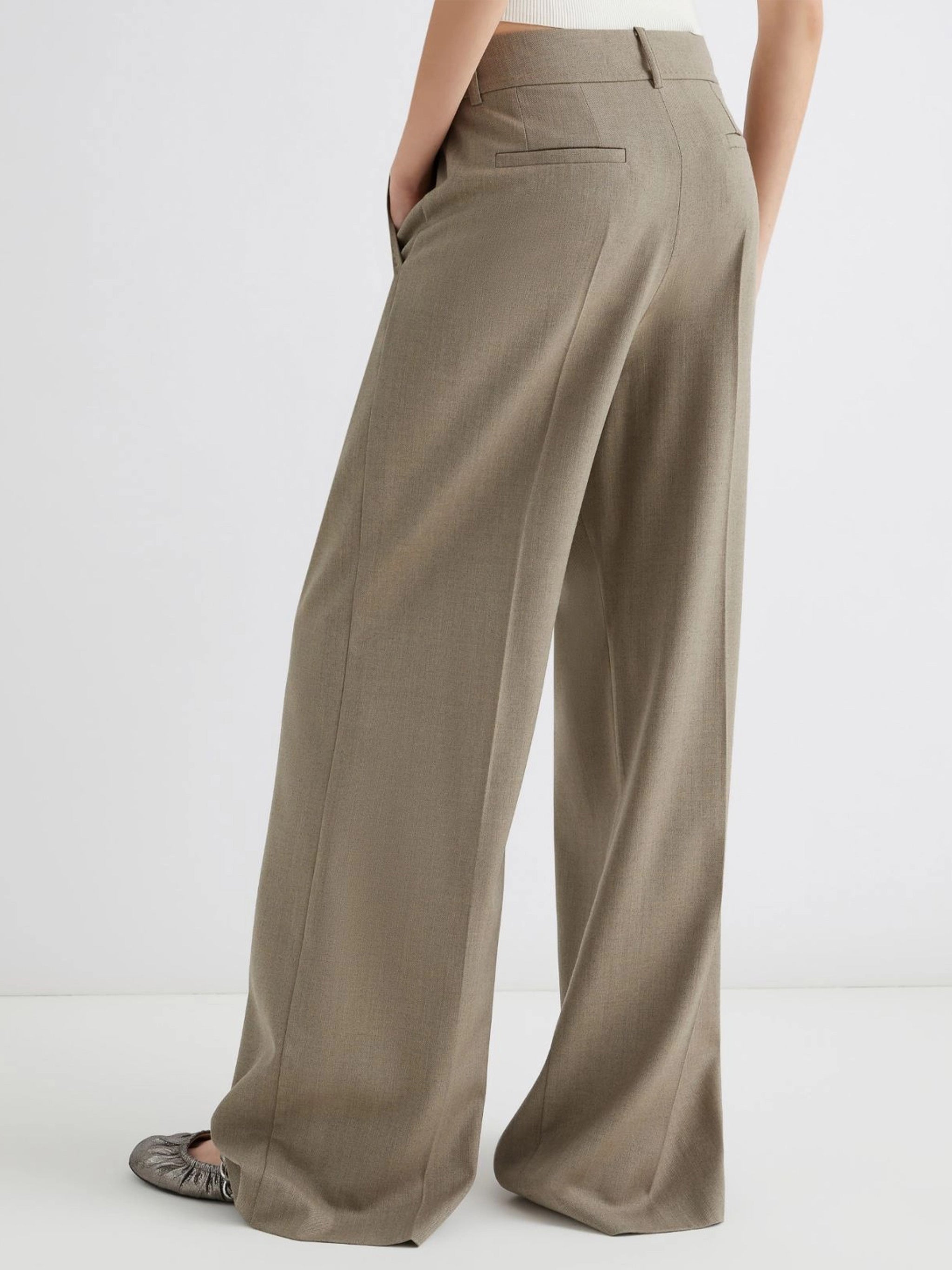 Elevate your workwear wardrobe with these sophisticated tailored pants from Marella. Crafted in a versatile nude neutral tone, these wide-leg trousers feature impeccable tailoring with front pintuck detailing that creates a sleek, elongating silhouette.