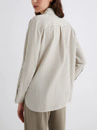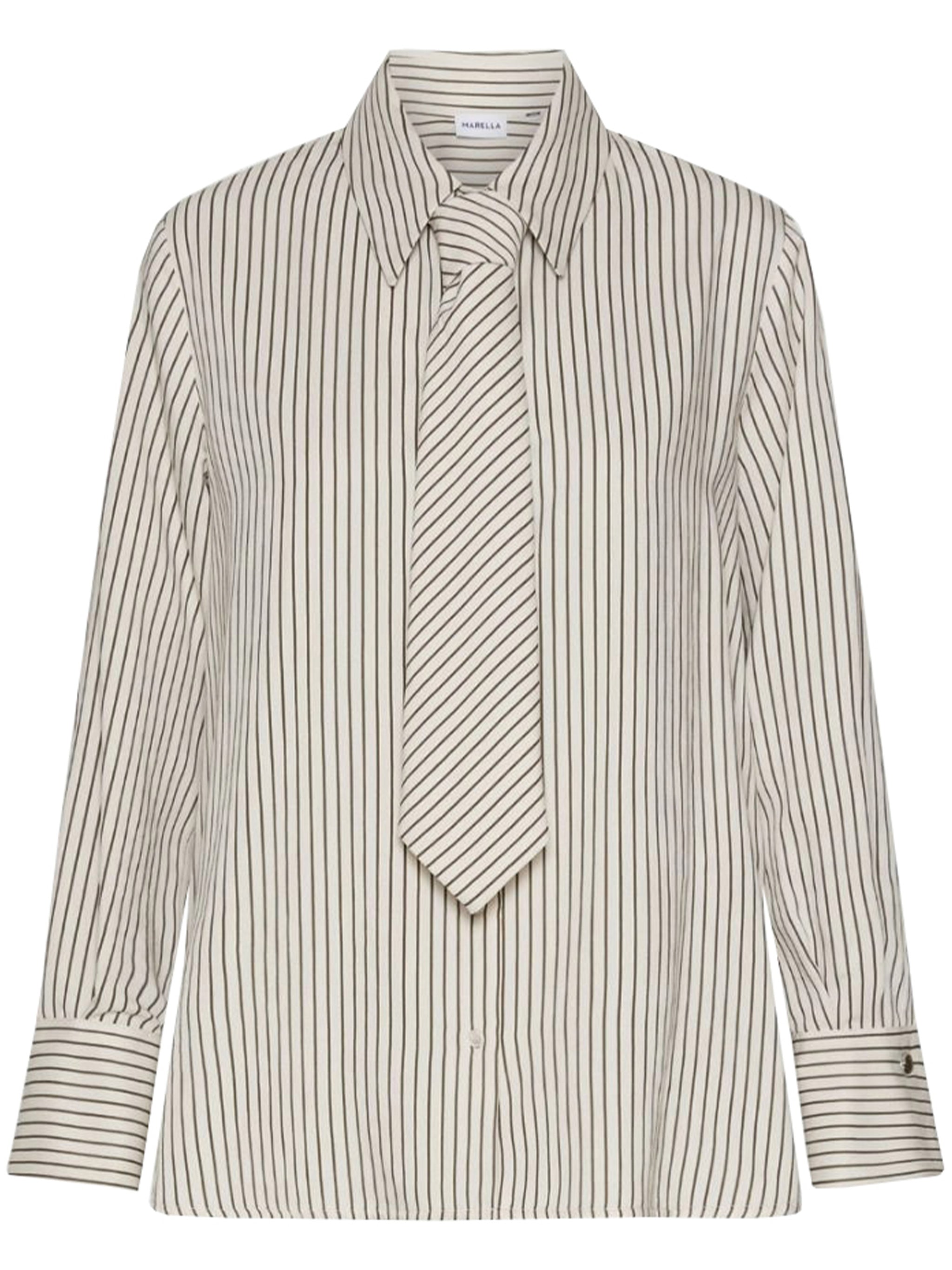 Elevate your workweek wardrobe with this sophisticated striped blouse from Marella. Crafted from luxurious viscose in timeless neutral tones, this shirt features classic vertical stripes and an elegant tie detail at the neckline for a refined, polished look.