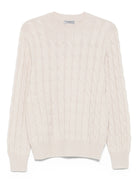 Elevate your knitwear collection with this luxurious cable-knit sweater from Gran Sasso, crafted in a sophisticated nude neutral tone. This timeless pullover features a classic crew neckline and is expertly constructed from a premium blend of 80% wool, 10% viscose, and 10% cashmere for exceptional softness and warmth.
