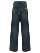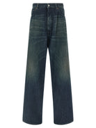 Crafted from stone-washed rigid cotton denim, these jeans feature a distinctive wide and straight leg silhouette that offers both comfort and contemporary style. The regular waist and classic five-pocket design provide timeless appeal, while the signature 'Numeric Signature MM6' and 'White Stitch Line' back patches add an unmistakable designer touch.