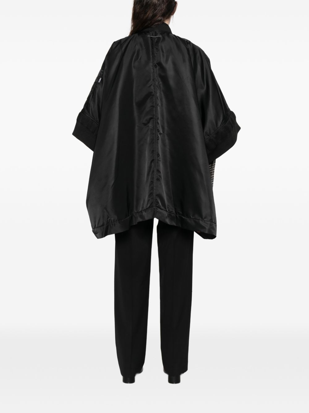 Elevate your outerwear collection with this striking Nylon Cape from MM6 Maison Margiela. This contemporary piece features a sleek black design with modern zip detailing and practical side pockets for effortless functionality. The short sleeves with ribbed cuffs add a sporty edge, while the relaxed fit ensures comfortable, all-day wear.