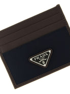 This sleek Prada cardholder combines luxurious leather craftsmanship with modern functionality. Featuring distinctive nylon inserts and the iconic enamelled metal triangle logo, this compact accessory embodies the brand's signature blend of innovation and elegance.
