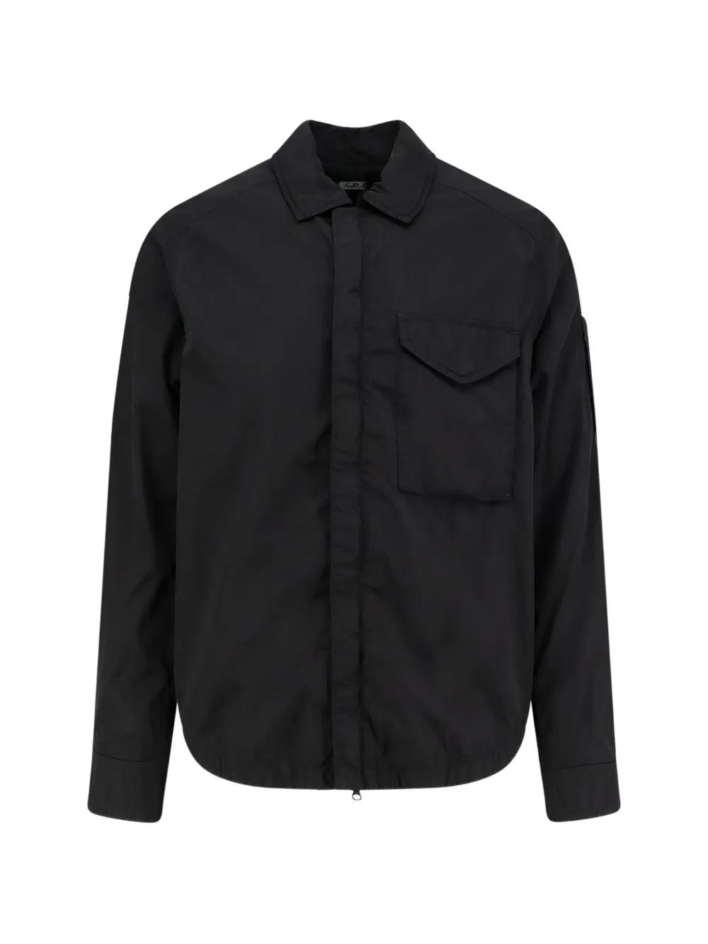 Elevate your transitional wardrobe with this sleek nylon overshirt from C.P. Company. Crafted in classic black, this versatile piece features a point collar, button fastening, and a functional patch pocket for a utilitarian edge.