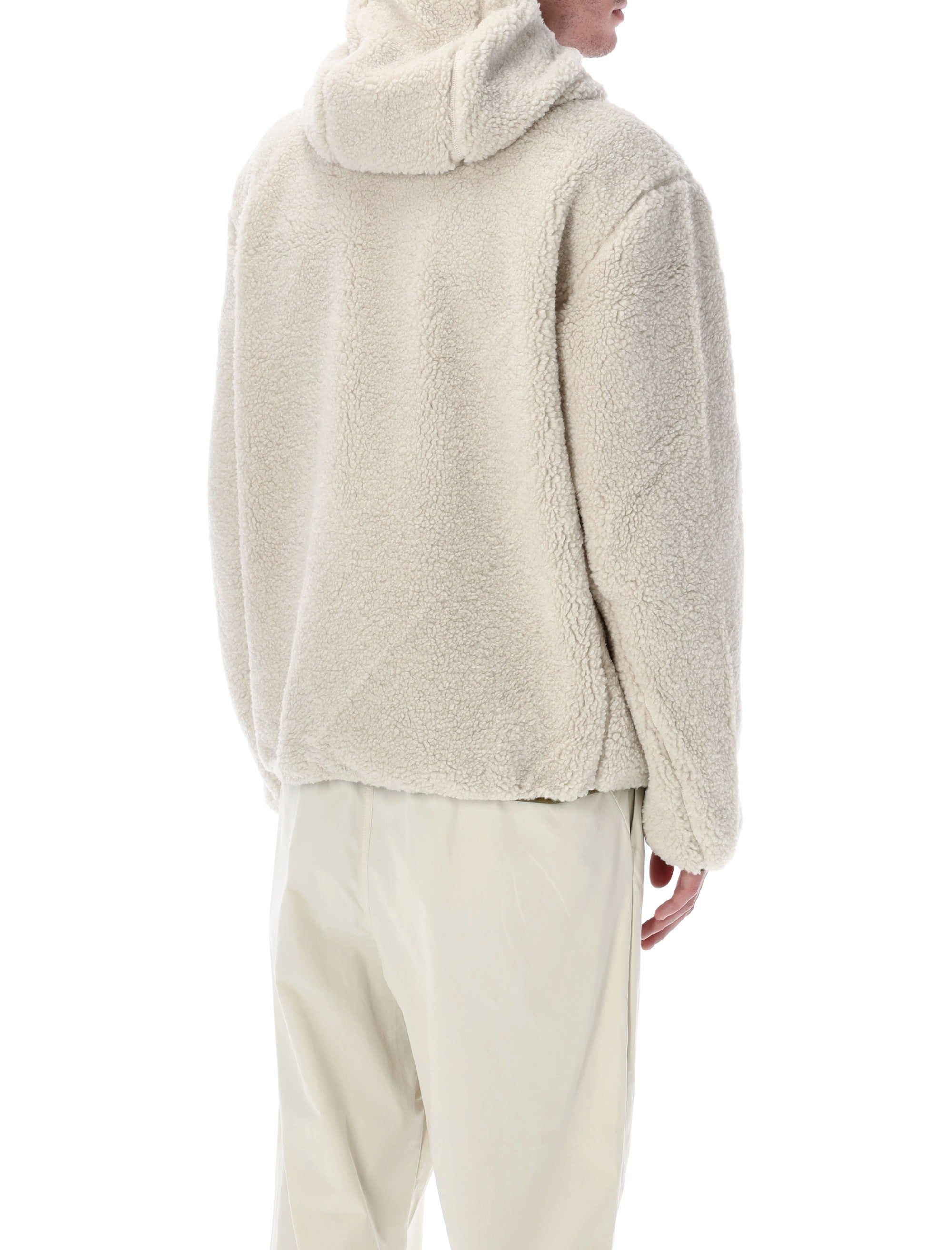 MADE FROM A COTTON AND POLYESTER SHERPA FLEECE, IT FEATURES DURABLE POLYESTER FRONT PANELS WITH A CENTRAL ZIP CLOSURE.