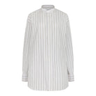This elegant AMI Paris off-white cotton button-down shirt features classic vertical stripes and a timeless silhouette that effortlessly bridges professional and casual styling.