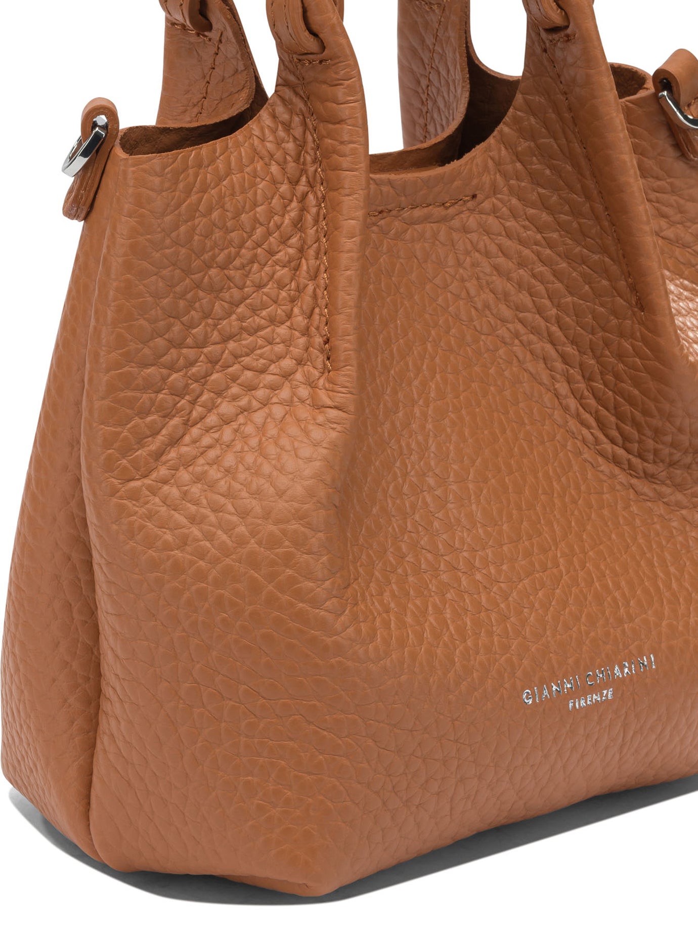 Elevate your everyday style with this exquisite orange leather handbag from GIANNI CHIARINI. Crafted from luxuriously textured pebbled leather in a rich cognac tone, this versatile tote combines Italian craftsmanship with timeless design.