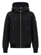 The Original Ballistic Bomber from Moose Knuckles is a premium cold-weather essential that combines classic bomber styling with superior insulation and protection. This sleek black jacket features a quilted construction, adjustable hood with drawstrings, and distinctive snap-button detailing across the shoulders and chest for an elevated utilitarian aesthetic.