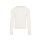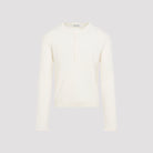 CRAFTED FROM SUPERIOR COTTON CREPE, THE OUR LEGACY FINE HENLEY IN IVORY COMBINES TIMELESS ELEGANCE WITH CASUAL COMFORT. ITS SOFT EIGHT-BY-ONE RIB KNIT AND RELAXED FIT MAKE IT IDEAL FOR LAYERING OR WEARING SOLO, WHILE THE MOTHER-OF-PEARL BUTTON PLACKET AND SUBTLE SIDE SPLITS ADD REFINED DETAILS FOR A CONTEMPORARY LOOK.