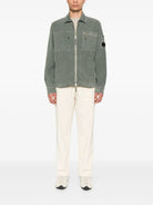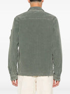 This versatile C.P. Company overshirt combines utilitarian style with contemporary comfort. Crafted in a sophisticated olive-gray tone, this piece features a classic shirt collar, button-front closure with zip overlay, and functional chest pockets for a modern workwear aesthetic.