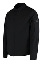 BLACK OVERSHIRT IN TECHNICAL FABRIC, CHARACTERIZED BY A SIMPLE AND MODERN DESIGN. IT FEATURES A CLASSIC COLLAR AND LONG SLEEVES, IDEAL FOR A VERSATILE LOOK SUITABLE FOR VARIOUS OCCASIONS. THE REGULAR FIT OFFERS COMFORT AND FREEDOM OF MOVEMENT, MAKING IT PERFECT FOR EVERYDAY USE. LOGO DETAIL ON THE SLEEVE. THIS PIECE EASILY PAIRS WITH VARIOUS OUTFITS, BOTH CASUAL AND MORE FORMAL. MACHINE WASHABLE FOR EASY MAINTENANCE.