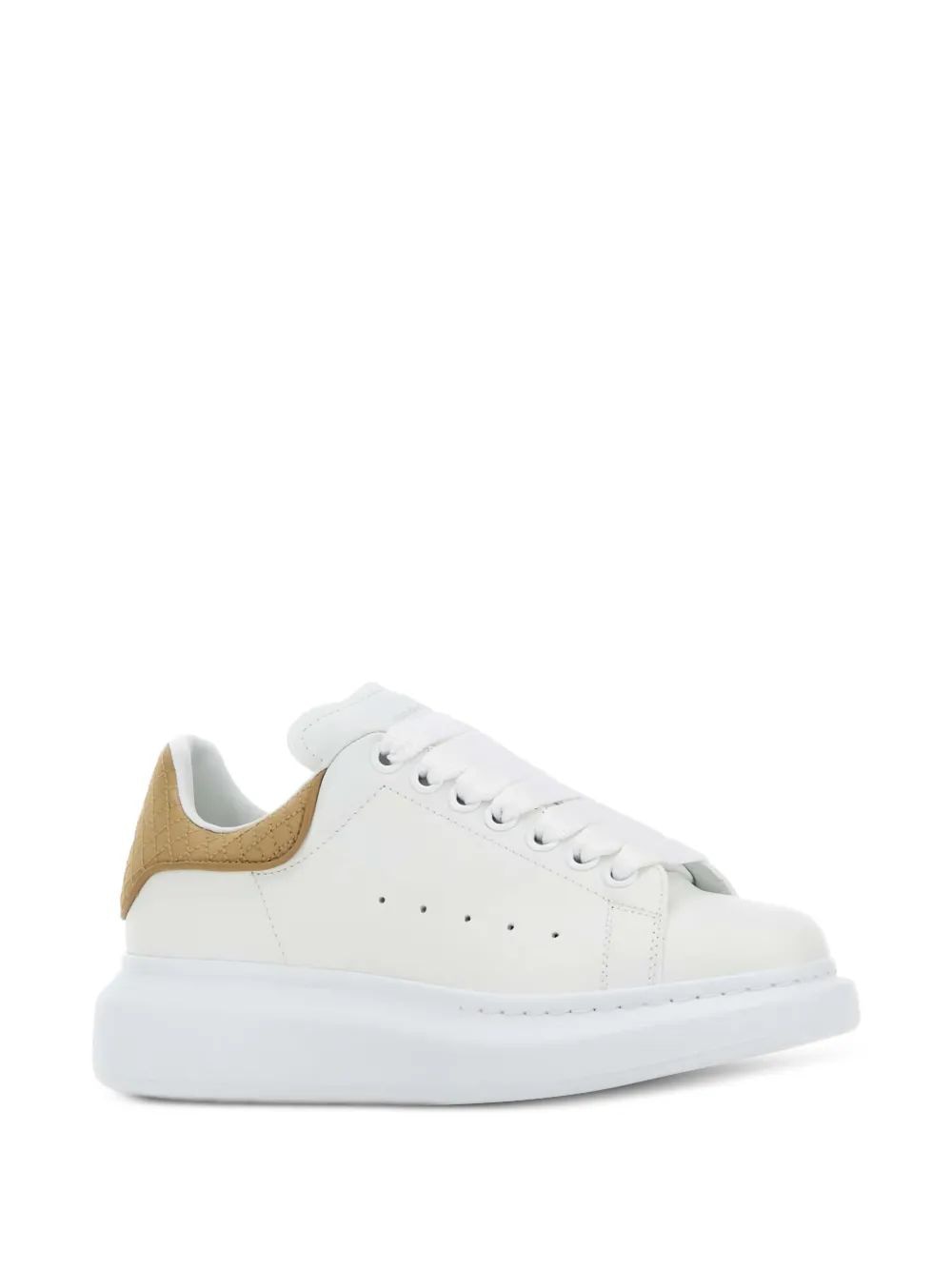 Elevate your everyday style with the iconic Oversize Sneaker from Alexander McQueen. This luxury low-top features a pristine white leather upper with the brand's signature oversized sole, creating a bold yet refined silhouette that has become a modern classic.