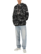 OVERSIZE FIT 43% VIRGIN WOOL 34% POLYESTER 23% ACRYLIC MADE IN ITALY THE MODEL IS 185 CM TALL AND WEARS SIZE L