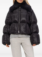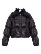 JIL SANDER QUILTED JACKET WITH FAUX FUR COLLAR BLACK COLOUR QUILTED PATTERN HIGH NECK REMOVABLE SHEARLING COLLAR ZIP CLOSURE PUFF SLEEVES MADE FROM POLYAMIDE GOOSE DOWN AND GOOSE FEATHER WOMENS DOWN JACKETS CLOTHING