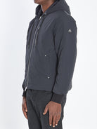 FEATURES A DRAWSTRING HOOD, FRONT ZIP CLOSURE WITH DOUBLE SLIDER, THREE ZIPPERED FRONT POCKETS, LOGO PATCH ON THE SLEEVE, AND ELASTICATED CUFFS.