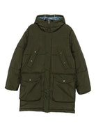 Embrace the cold weather season in style with this luxurious Padded Parka Coat from Paul Smith. Crafted in a sophisticated olive green hue, this quilted design features practical flap pockets and convenient snap button fastening for effortless wear.
