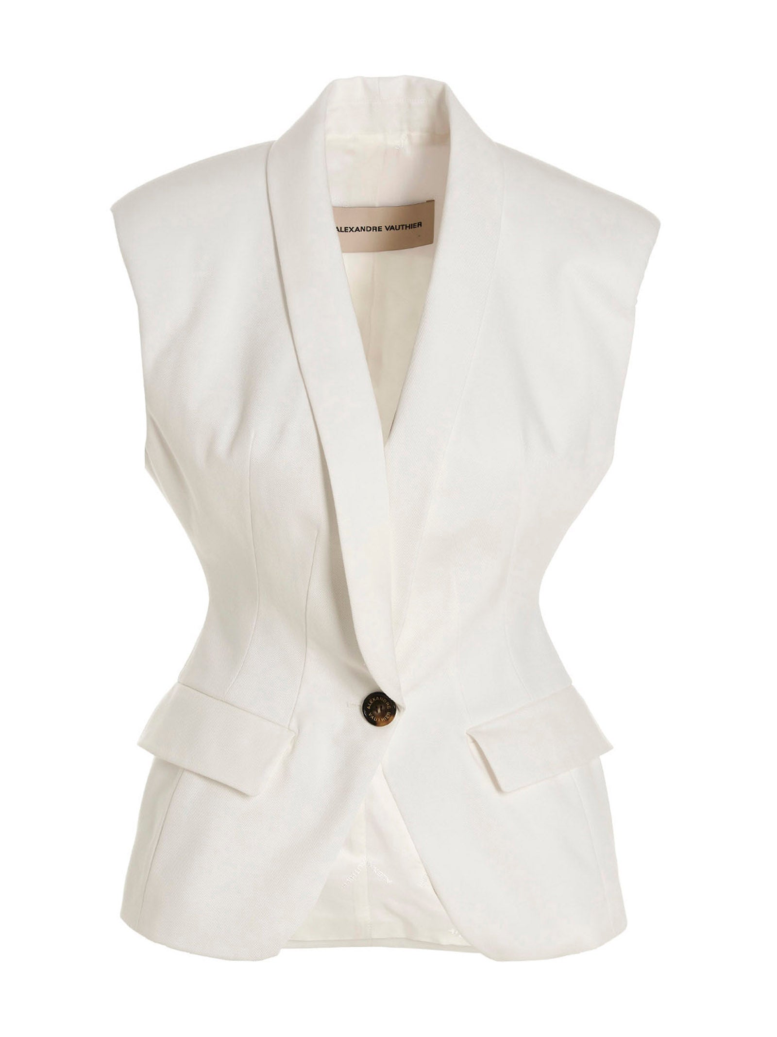Elevate your wardrobe with this sophisticated Padded Shoulders Vest by Alexandre Vauthier. Crafted from premium cotton, this sleeveless vest features structured shoulder pads for a powerful silhouette, a single-button closure, and functional pockets for added practicality.