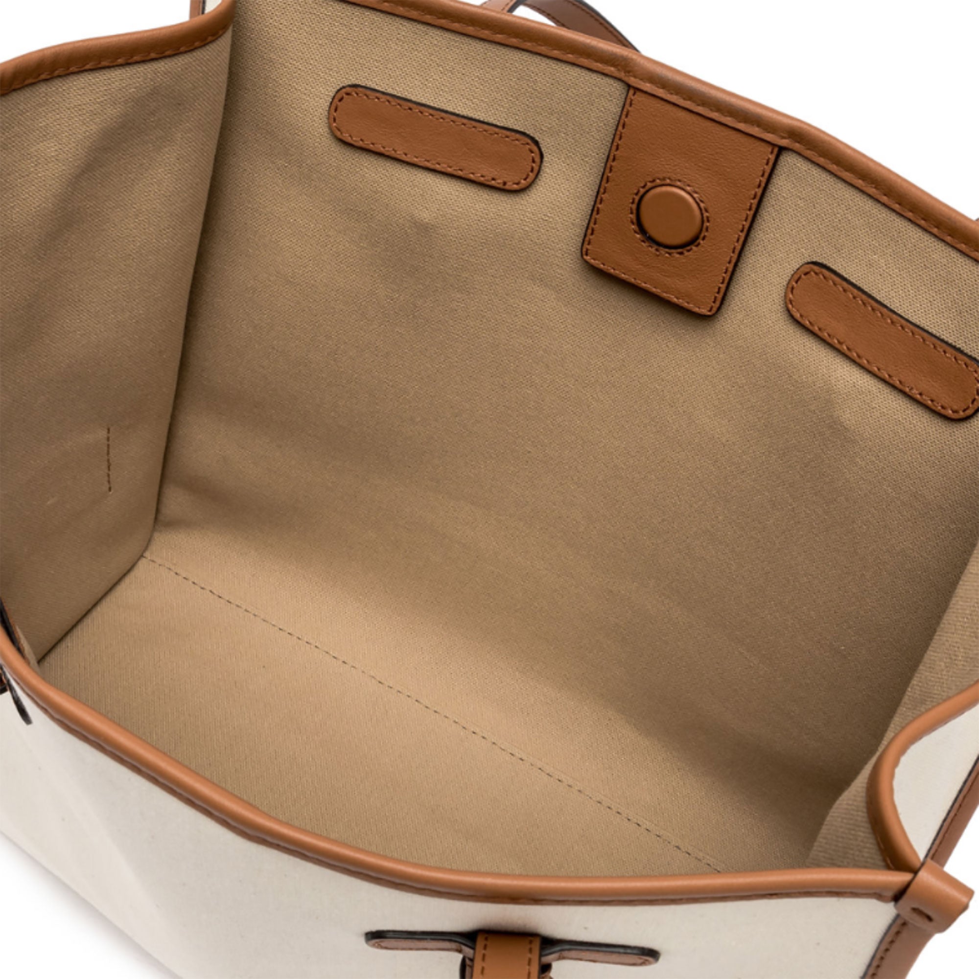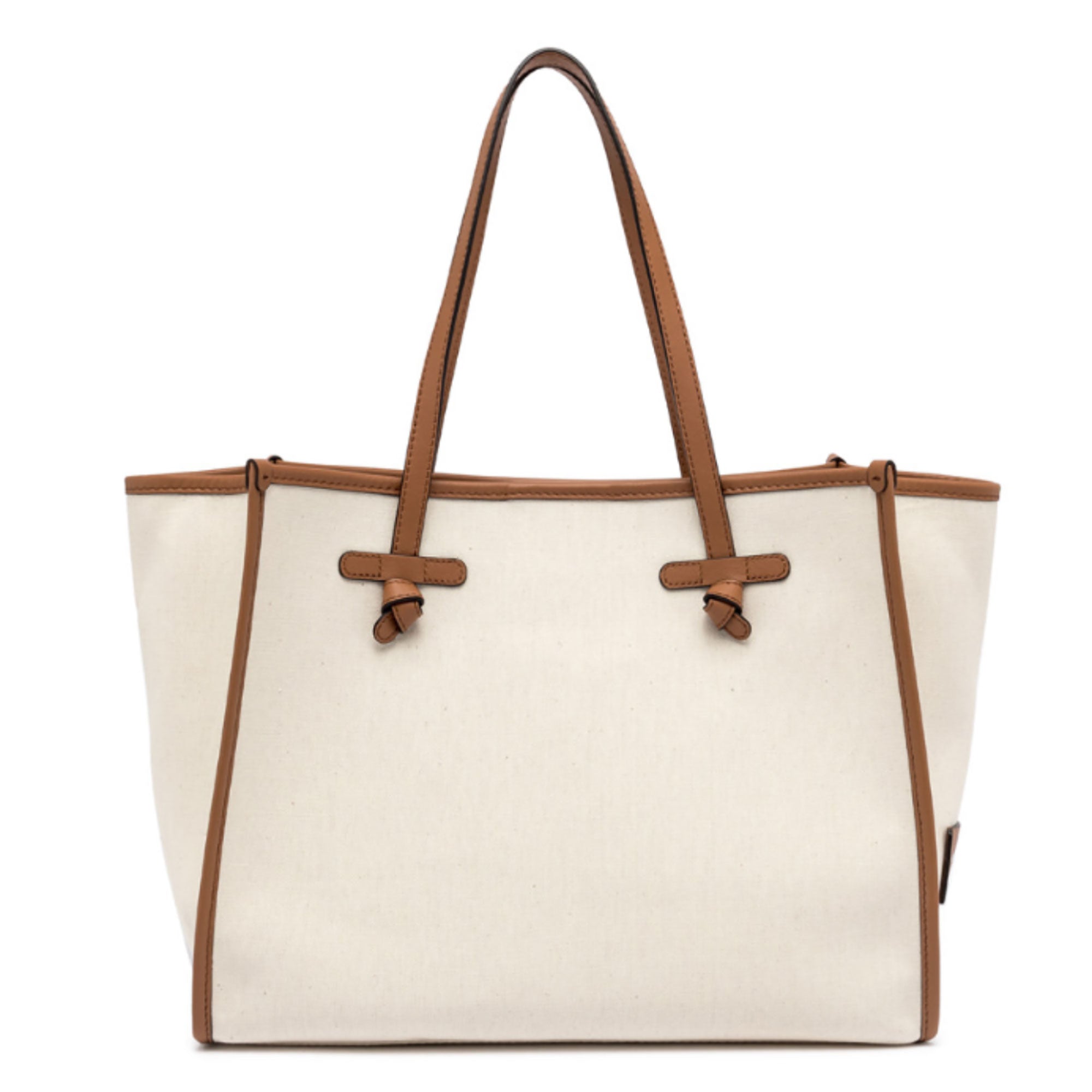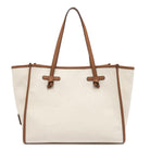Elevate your everyday style with the MARCELLA Panna-Corda-Caramel Bag, a sophisticated tote that seamlessly blends form and function. This beautifully crafted piece features a luxurious cream canvas body accented with rich caramel leather trim and handles, creating a timeless two-tone aesthetic.