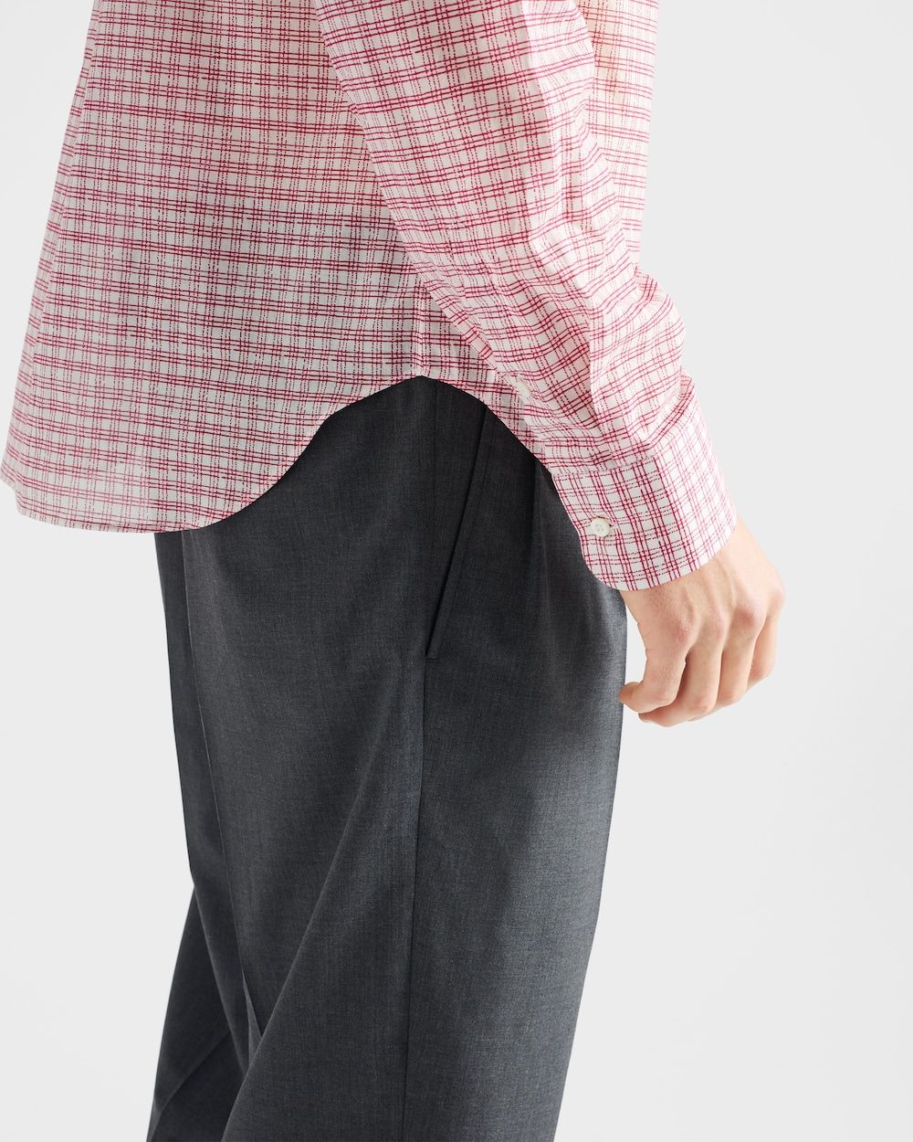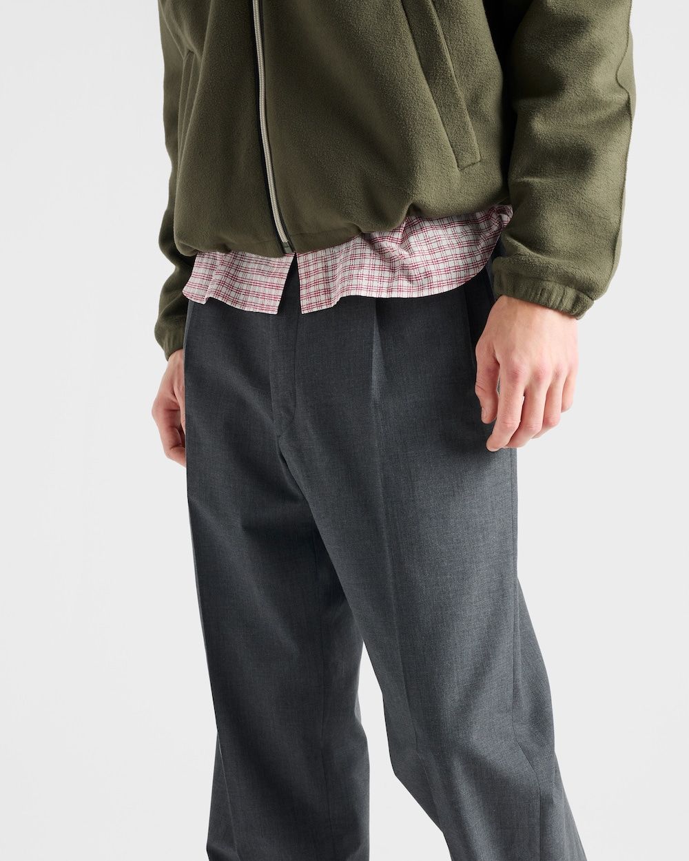 Elevate your professional wardrobe with these impeccably tailored dress pants from Prada. Crafted in a sophisticated gray tone with classic pleated detailing, these trousers exemplify refined Italian craftsmanship and timeless style.
